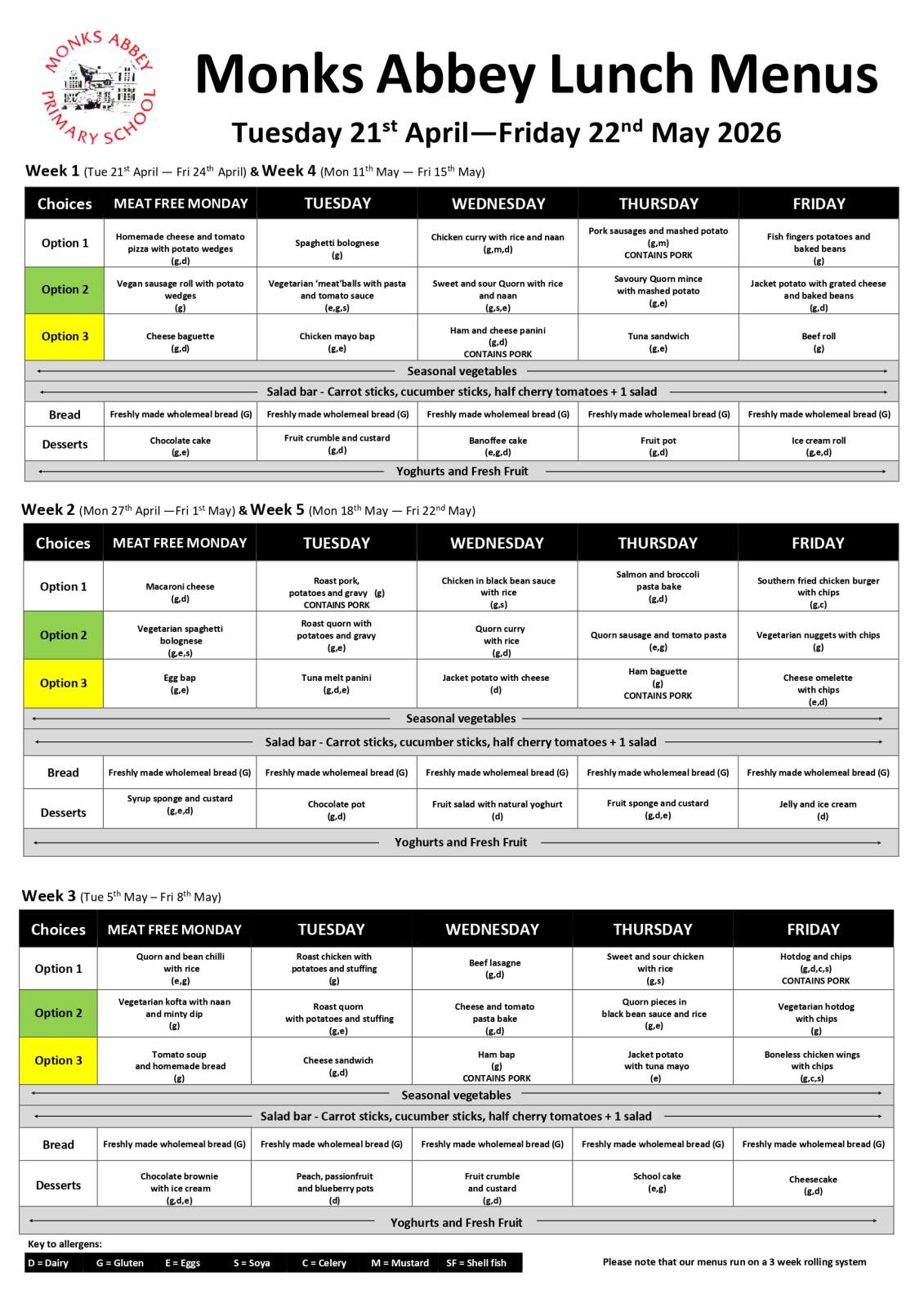 If you do not wish to order, please ensure you provide a packed lunch for your child.